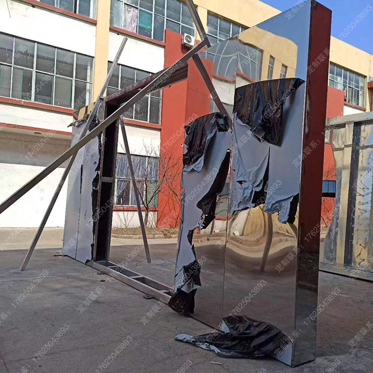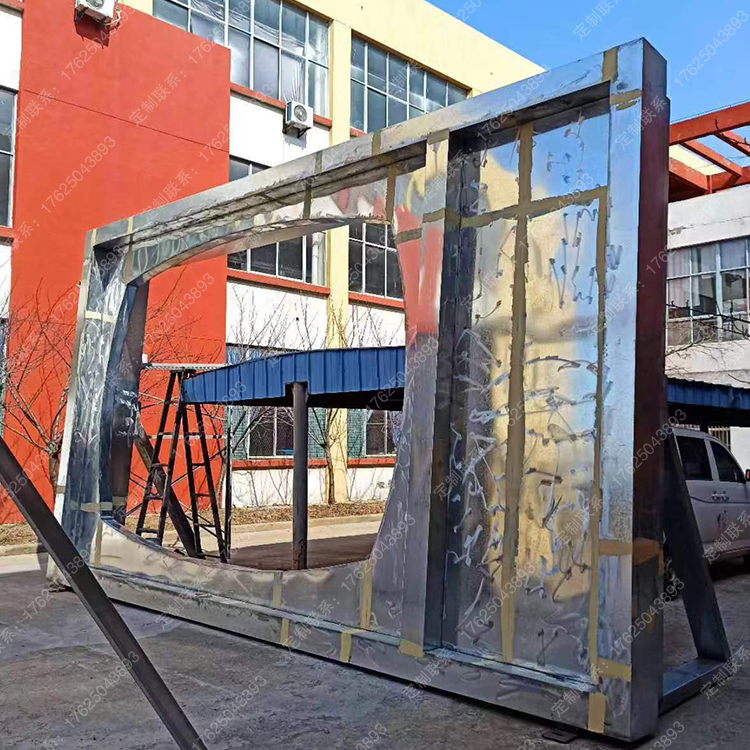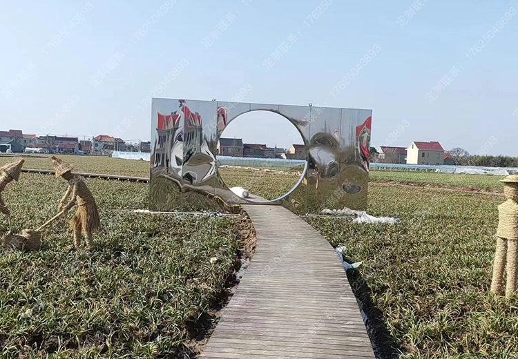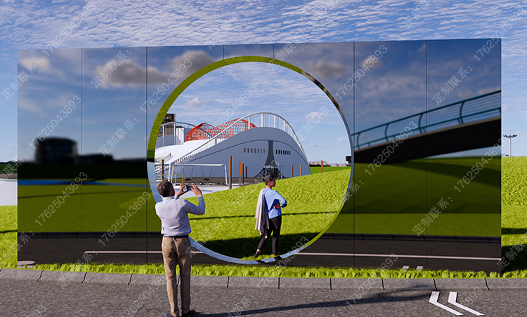 景区公园拍照景墙入口标识牌互动打卡雕塑不锈钢镜面景观小品