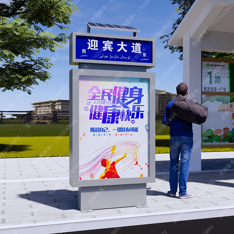 路名灯箱太阳能指路广告牌光伏发电宣传栏街道名称阅报栏