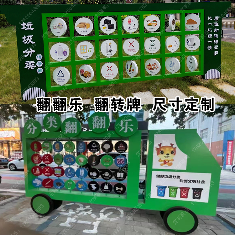 互动翻转牌垃圾分类主题翻翻乐设计制作旋转活动相框游乐设施